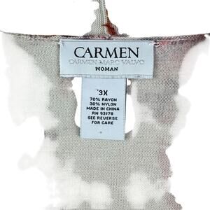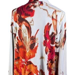 Carmen Marc Valvo 3X Plus Orange Red Beige Floral Knit Open Cardigan Sweater