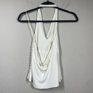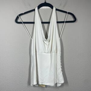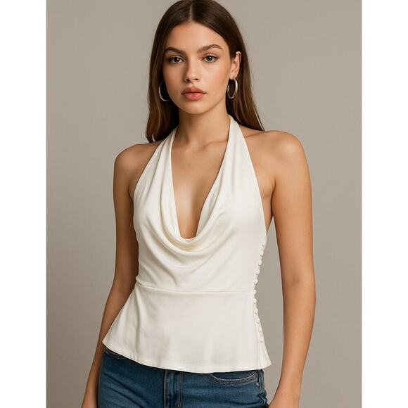 Carmen Marc Valvo 6 Halter Neck Cami Top Side Buttons White Rayon Sleeveless