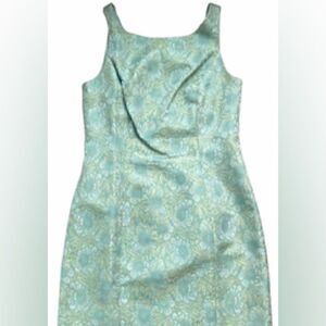 Carmen Marc Valvo sleeveless dress with jacquard floral pattern. Features a fitted silhouette and cute bows on the front and back.