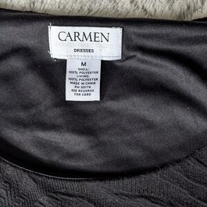 Carmen Marc Valvo Black Bodycon fitted midi dress long sleeve medium.