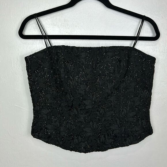 Carmen Marc Valvo Black Floral Beaded Evening Corset Top Size 14