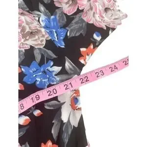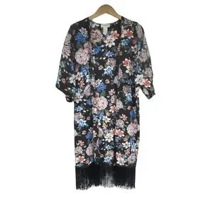Carmen Marc Valvo Black Floral Loose Tassels Kimono Open Cover Shirt Medium