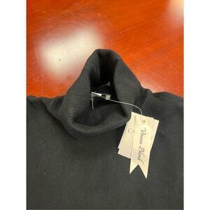 Carmen Marc Valvo Black Fringe Hem Viscose Soft Blend Turtleneck Sweater sz M N