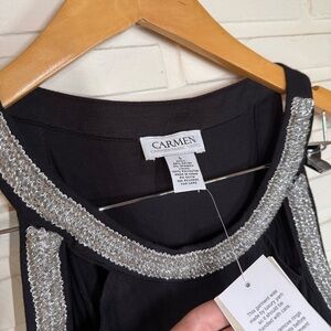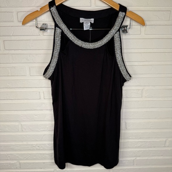 Carmen Marc Valvo Black Jeweled Accent Sleeveless Top, Women’s Size Large