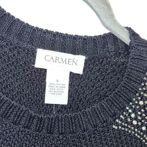 Carmen Marc Valvo Black Knit Sweater Embellished Jewels S Small new nwt 100% cotton. Bundle 3 or more items for automatic 30% discount off whole bundle! Offers welcome!