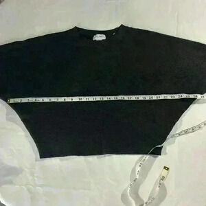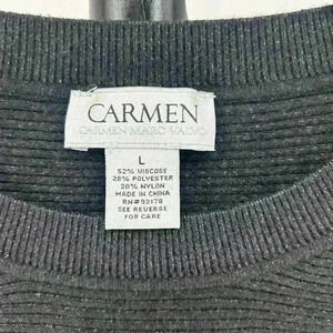 Carmen Marc Valvo Black Ribbed Cropped Dolman Sleeve Sweater Size Large