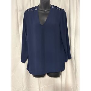Carmen Marc Valvo blouse, women’s size 6 black top, ruffle sleeve blouse, statement sleeve blouse, elegant evening top, cocktail party blouse, dressy black blouse, career to evening outfit, chic bell sleeve blouse, feminine work top, NWT designer blouse, versatile black blouse, polished women’s shirt, stylish modern top, timeless elegant blouse, lightweight layered sleeve blouse, fashion-forward career wear, black ruffle sleeve shirt, sophisticated evening blouse