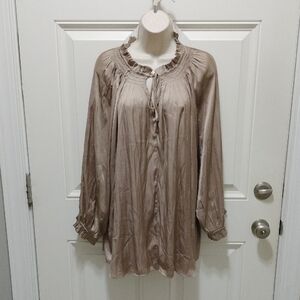 — Style: Long sleeve blouse with dramatic layered ruffle bell sleeves
