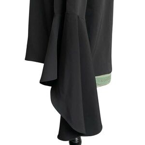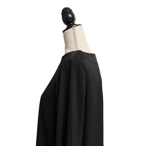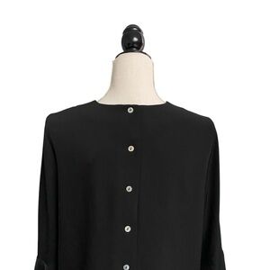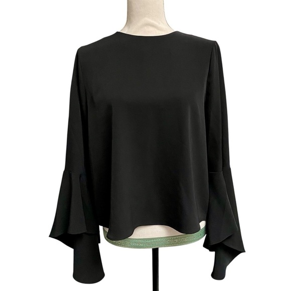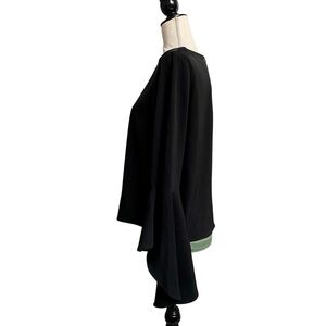 Carmen Marc Valvo blouse, women’s size 6 black top, ruffle sleeve blouse, statement sleeve blouse, elegant evening top, cocktail party blouse, dressy black blouse, career to evening outfit, chic bell sleeve blouse, feminine work top, NWT designer blouse, versatile black blouse, polished women’s shirt, stylish modern top, timeless elegant blouse, lightweight layered sleeve blouse, fashion-forward career wear, black ruffle sleeve shirt, sophisticated evening blouse