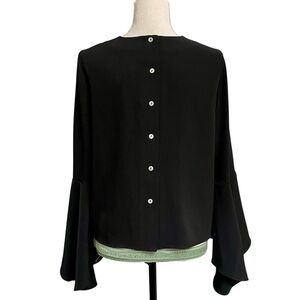Carmen Marc Valvo Black Ruffle Bell Sleeve Blouse Sz 6 Elegant Statement Top NWT