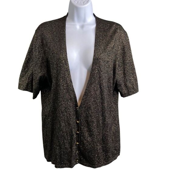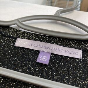 Carmen Marc Valvo Black Sparkly Button Up Knit Shirt Size 1X Special Occasion