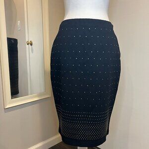 Carmen Marc Valvo Black Studded Knit Pencil Skirt, Size Medium