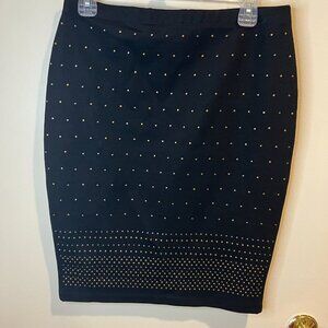 Carmen Marc Valvo Black Studded Pencil Skirt, Size Medium