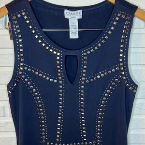 Carmen Marc Valvo Black Studded Mini Fitted Sheath Dress, Women’s Size Small