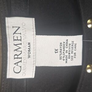 Carmen Marc Valvo Black Top with Gold Studs, Oversized, Plus Size 1X, NWT