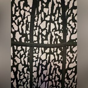 Serve sleek sophistication in this stunning Carmen Marc Valvo bodycon dress, crafted in a luxe knit fabric with a bold abstract print and contouring black trim. The sculpted fit hugs all the right places, while the high-quality construction keeps it comfortable and polished. Perfect for cocktails, date nights, or high-power gallery openings where you accidentally steal the spotlight.