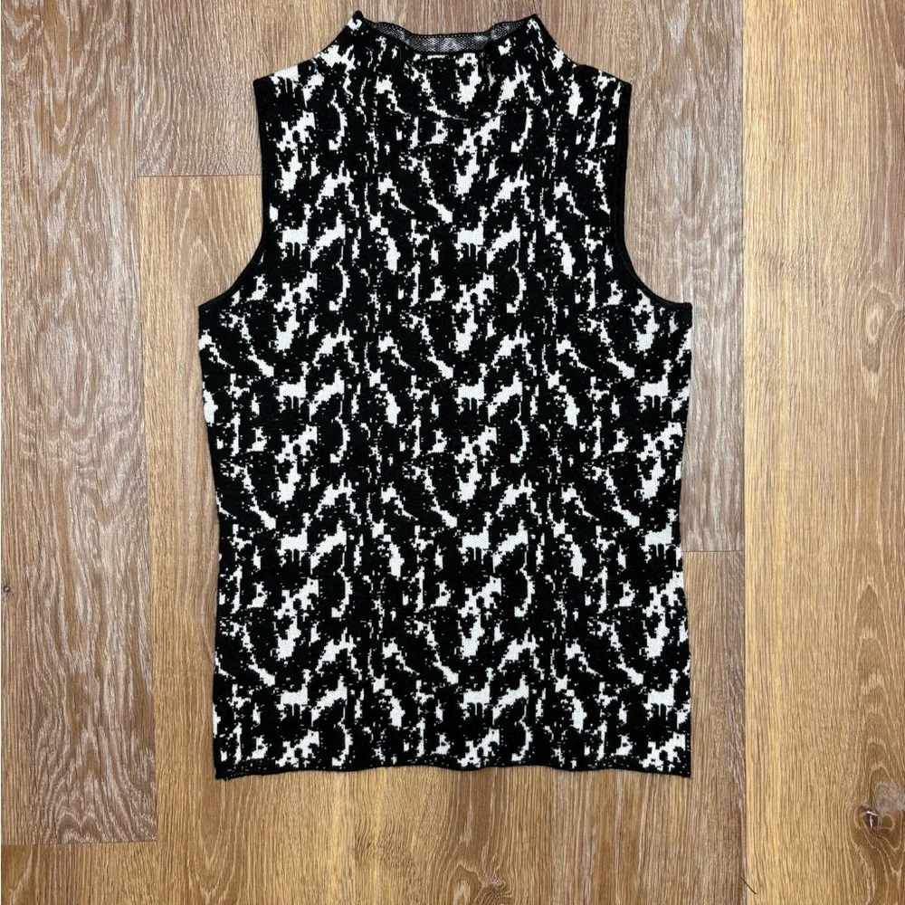 Carmen Marc Valvo Black and White Sleeveless Knit Tank