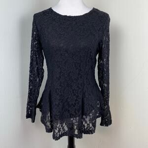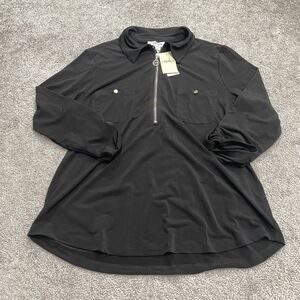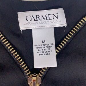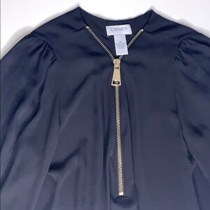 Carmen Marc Valvo Black zip front long sleeve blouse women’s medium