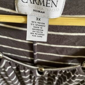 Carmen Marc Valvo Charcoal and White Striped Tee