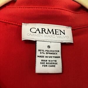 Carmen Marc Valvo Coral Henley Collared Shirt Womens S Red Long Sleeve Blouse