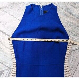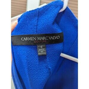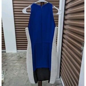 Carmen Marc Valvo Couture Size 6 Blue Colorblock Bodycon Dress Silk Wool Leather