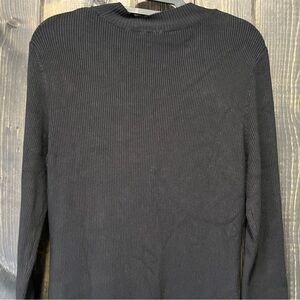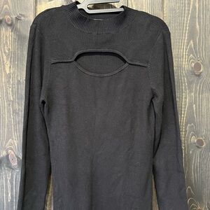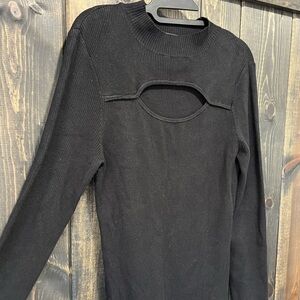 Carmen by Carmen Marc Valvo brand dress. Size large. Black. Mock neck. Ribbed knit. Cut out front. Long sleeves. Super stretch. Bodycon fitted. Knee length. Preloved. Please see all photos for condition.