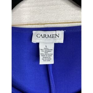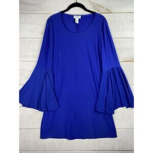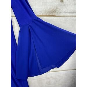 Carmen Marc Valvo Dress Sz L Ultra Blue Slit Bell Sleeve Knee Length Scoop Neck