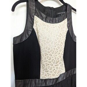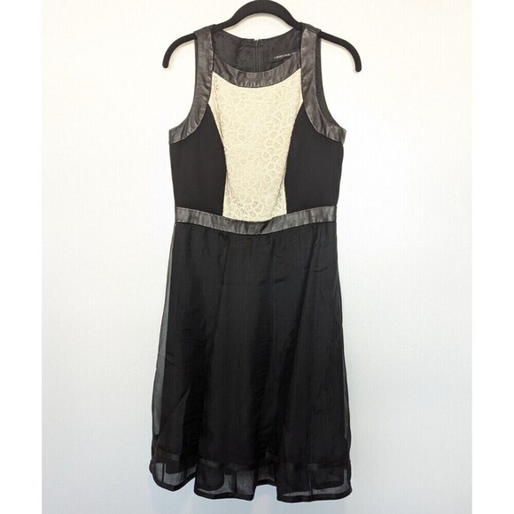 Carmen Marc Valvo Dress Womens 6 Black Silk Leather Lace Whimisgoth Fairy Mature