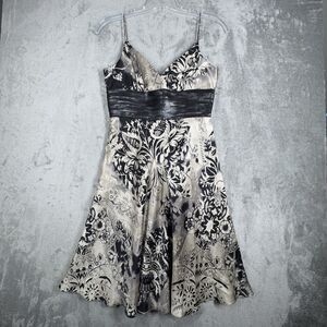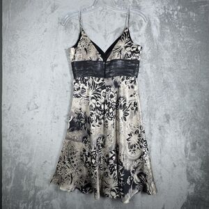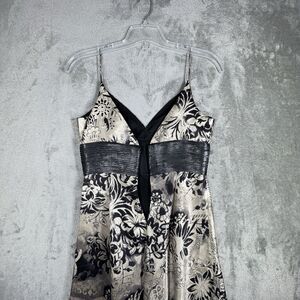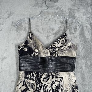 Carmen Marc Valvo Dress Womens 6 Black Silver Floral Silk Sip Dress Sequin Party