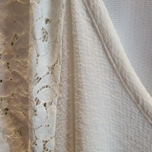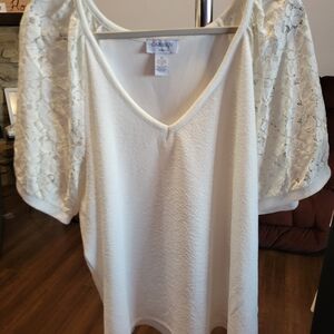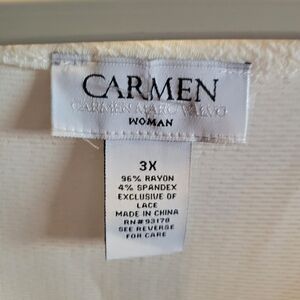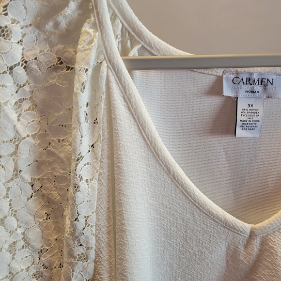 Elegant white top by Carmen Marc Valvo. Crafted with delicate lace.