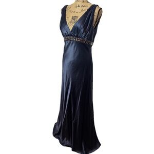 Carmen Marc Valvo Evening Dress Ball Gown Satin Blue Women’s 10