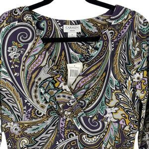 Carmen Marc Valvo Faux Wrap V-Neck Knee Length Sheath Dress Paisley Medium NWT