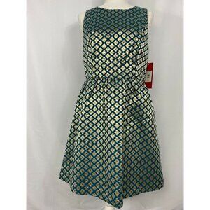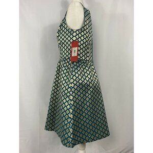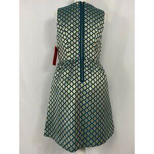 Carmen Marc Valvo Green Dress Gold Flower Women Si