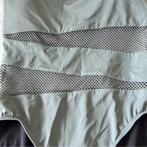 Carmen Marc Valvo green one-piece swimsuit with wide shoulder straps offers a chic look, while the horizontal tummy control band detail across the bodice adds a contemporary and comfortable fit. Nylon/spandex blend. Never worn.