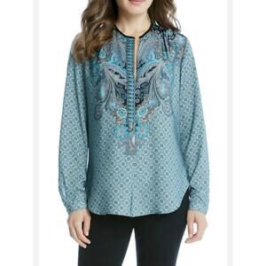 Carmen Marc Valvo Grey Boatneck Zipper Detail Blouse Size Small.