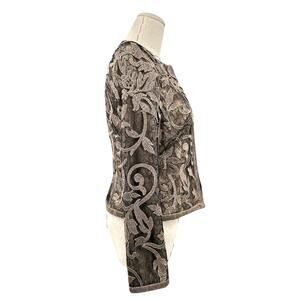 Carmen Marc Valvo Grey Floral Long Sleeves Embroidered Lace Jacket Size 2
