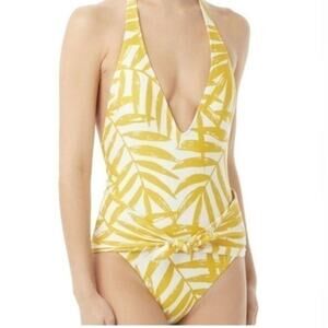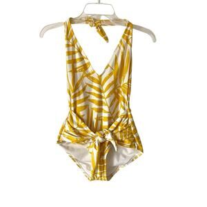 Carmen Marc Valvo Halter Yellow White One Piece Swimsuit size 12
