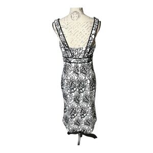 Carmen Marc Valvo Infusion Floral Midi Dress White Black Sequins sz 8