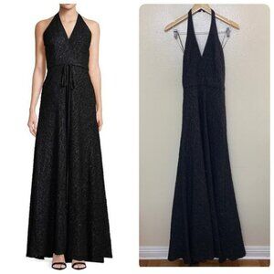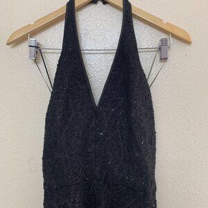 Carmen Marc Valvo Infusion Halter Neck Black Tie Gown Dress Size 4 Black Sequins
