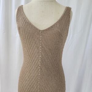 Carmen Marc Valvo Knit crochet Maxi Dress L tan gold All-over beaded formal vtg