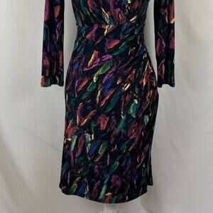 Carmen Marc Valvo Leaf Print Ruched BodyCon Dress NWOT Size S