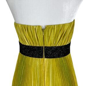 Carmen Marc Valvo Lime Green Pleated Strapless Beaded Waist Maxi Dress Gown 2