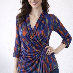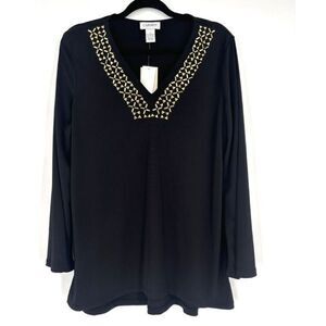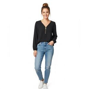 Carmen Marc Valvo Medium Zipper Neck Tunic Blouse