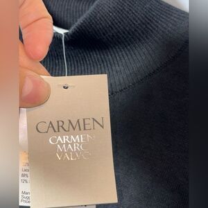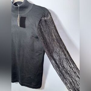 Carmen Marc Valvo Mock Turtleneck Black Women's Lace Long Sleeve Top Size S NWT