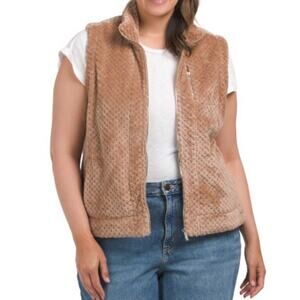 Carmen Marc Valvo NWOT Toasted Chestnut Faux Fur Gold Zipper Trim Vest XL