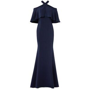 Exude Hollywood-glam in this Carmen Marc Valvo gown. It is designed with the silhouette of the season: the cold shoulder. Plus, a rich, navy hue makes it a versatile choice all-year long.