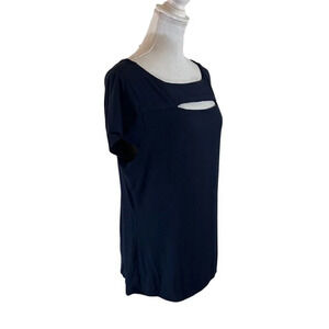 Carmen Marc Valvo Navy Blue Top XL Cutout Neckline Short Sleeve Stretch Knit
