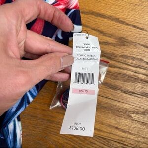 Carmen Marc Valvo Navy Floral One-Piece Swimsuit
