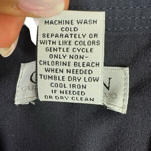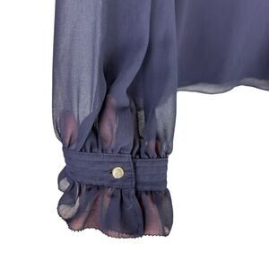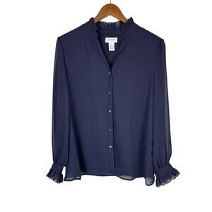 Carmen Marc Valvo Navy Sheer Chiffon Long Sleeve Button Up Business Blouse
