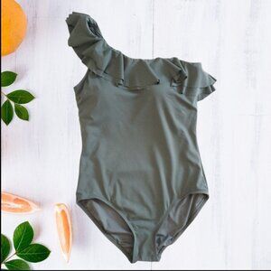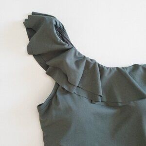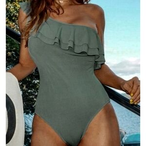 Carmen Marc Valvo One Shoulder Ruffle Olive Green One Piece Swimsuit NWT